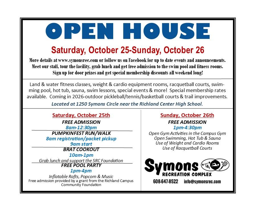Join the staff at Symons Recreation Center for two days of events such as the Pumpkinfest Run/Walk, tour the facility, grab a lunch and get free admission to the fitness center and pool. Learn more about special membership rates and more, Saturday, October 25 - Sunday the 26th.